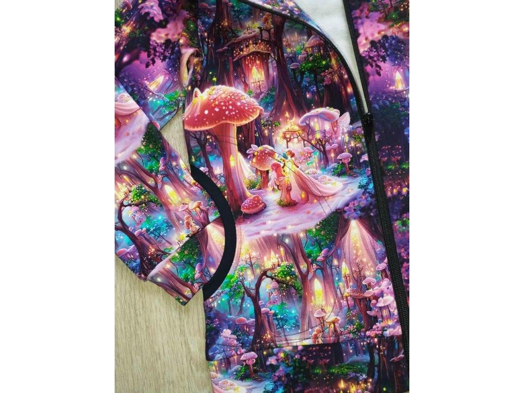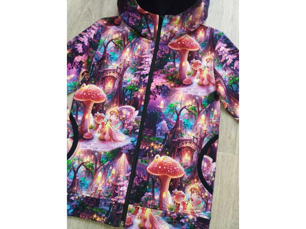 Tepláková mikina je z nepočesané teplákoviny .Mikina má kapsy v boku ,kapuce je vyvýšená bez šnůrek.