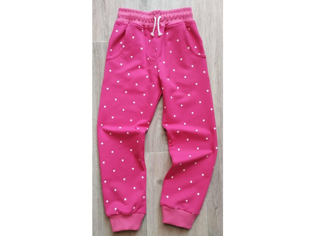 Tepláky z nepočesané teplákoviny , tepláky mají dvě kapsy ,v pase je guma se šnůrkou.