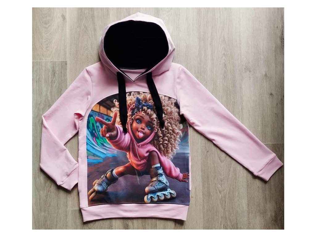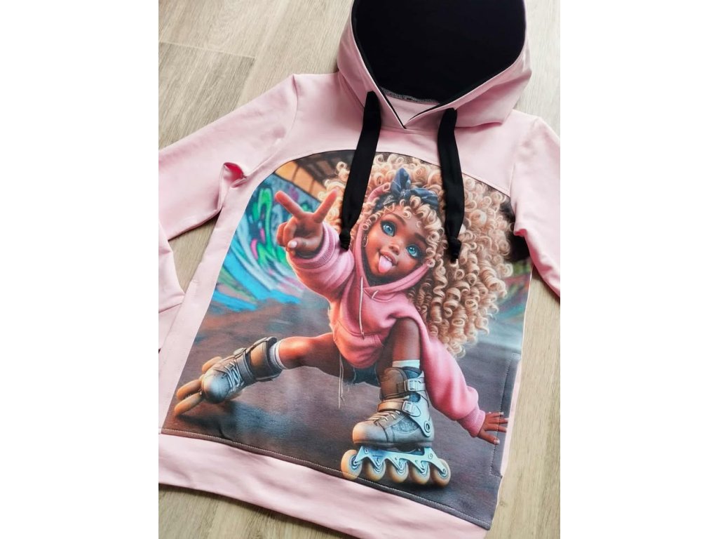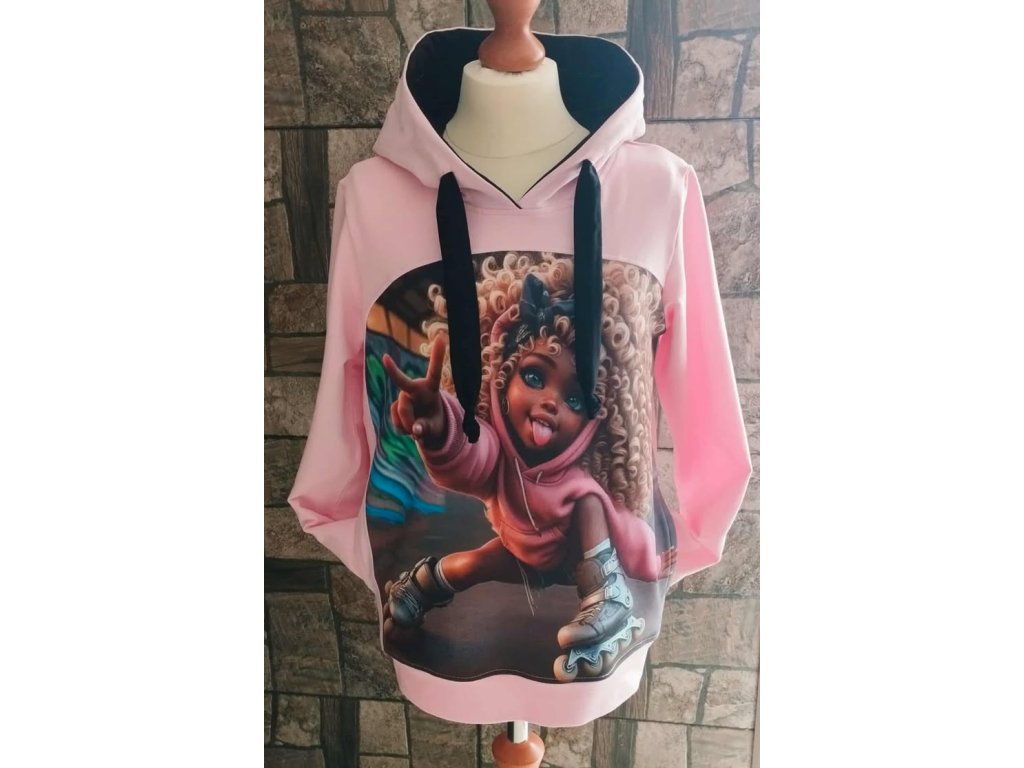 Tepláková mikina je z nepočesané teplákoviny . Mikina má kapsy v boku .Kapuce se šnůrkami.