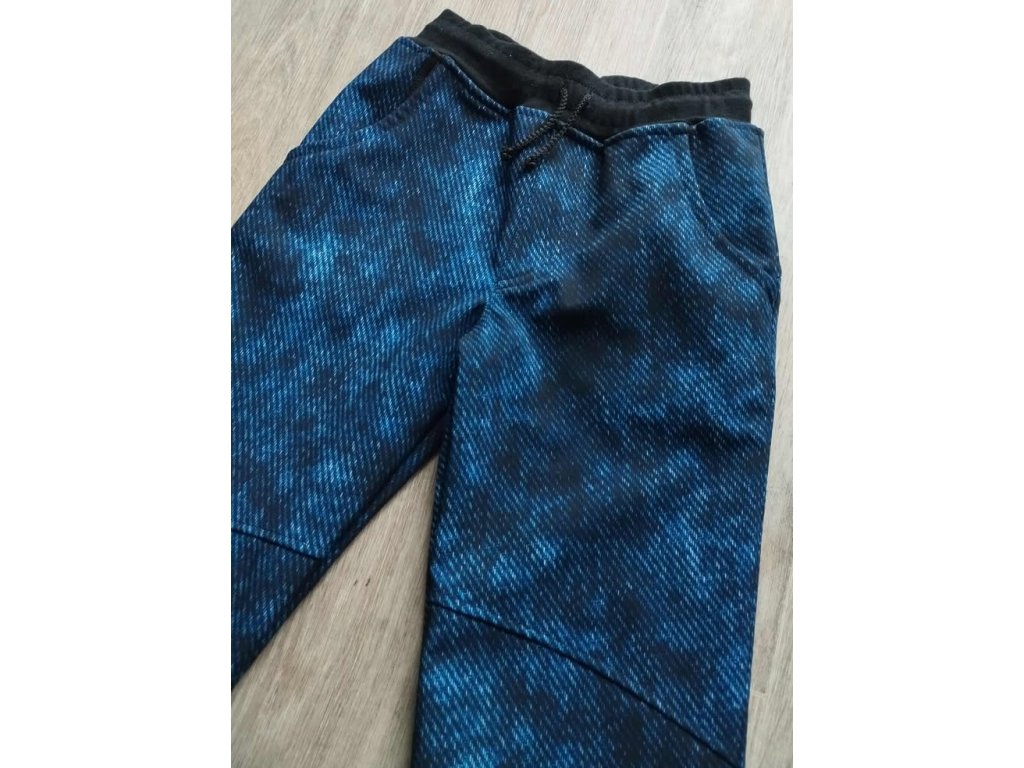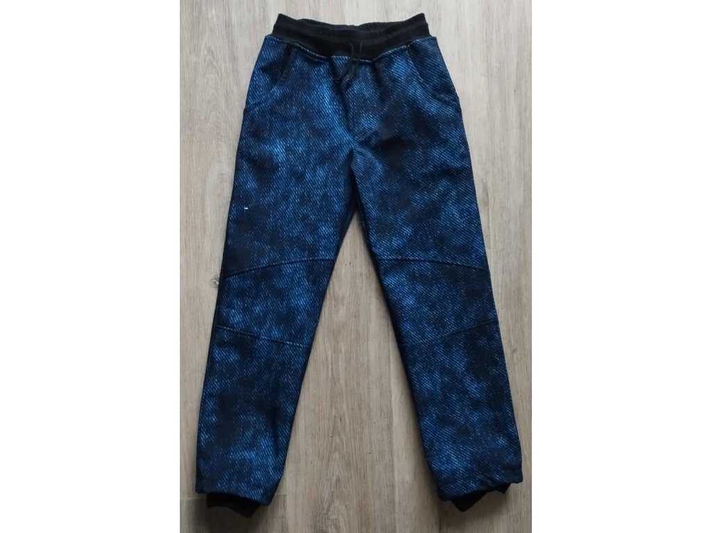Vnitřní stranu softshellu tvoří fleecová vrstva. Nohavice jsou zakončené náplety.