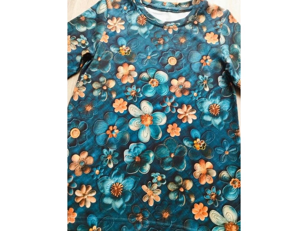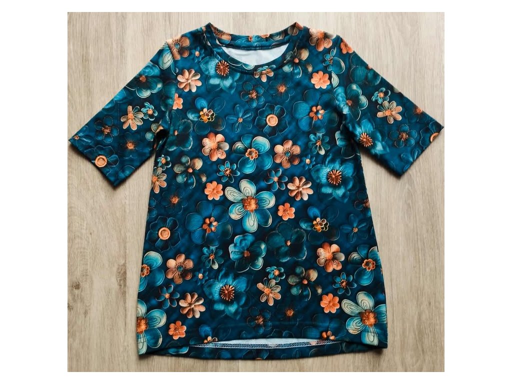 Úpletové tričko jenas s květy ,materiál je příjemný na dotek a dobře se nosí .