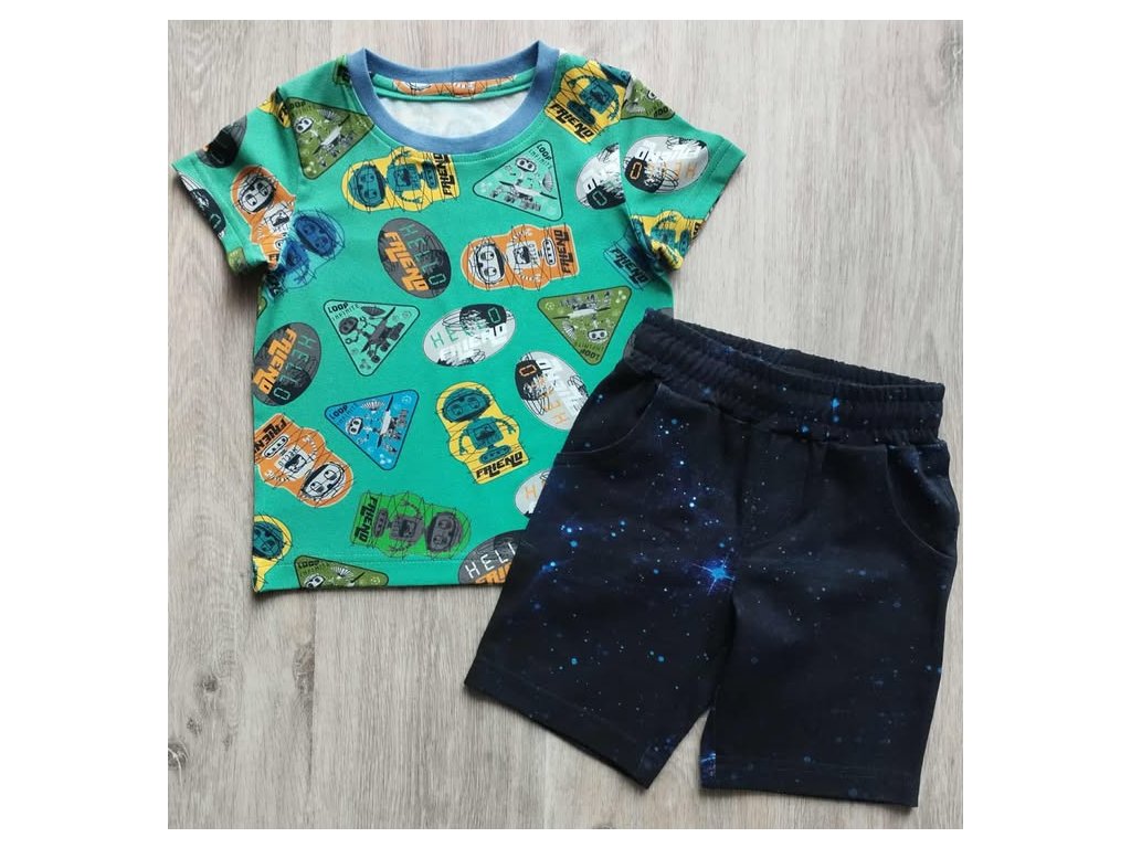 Úpletový komplet - tričko + kraťasy , kraťasy maji kapsy, v pase je guma