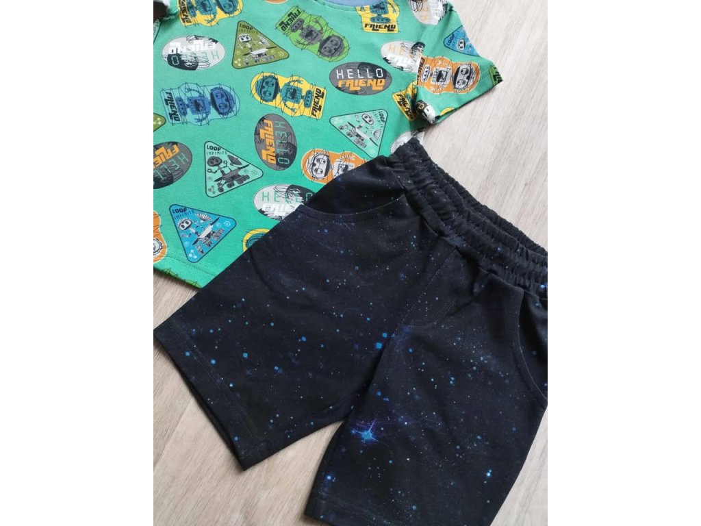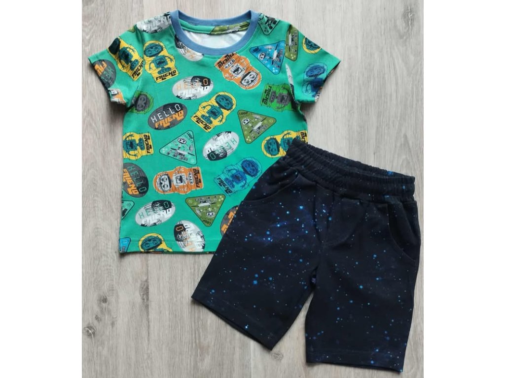 Úpletový komplet - tričko + kraťasy , kraťasy maji kapsy, v pase je guma