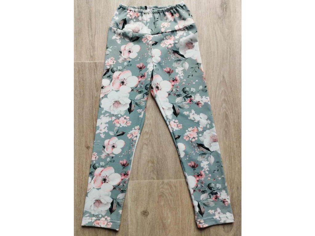Květy na šedé legíny vel. 110