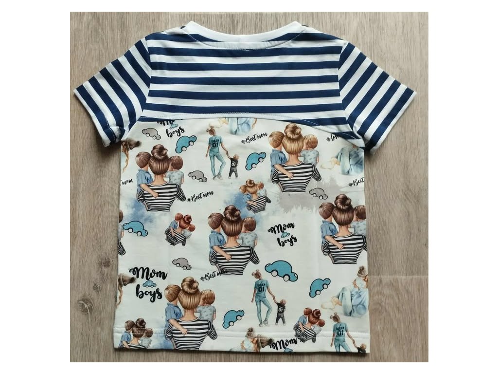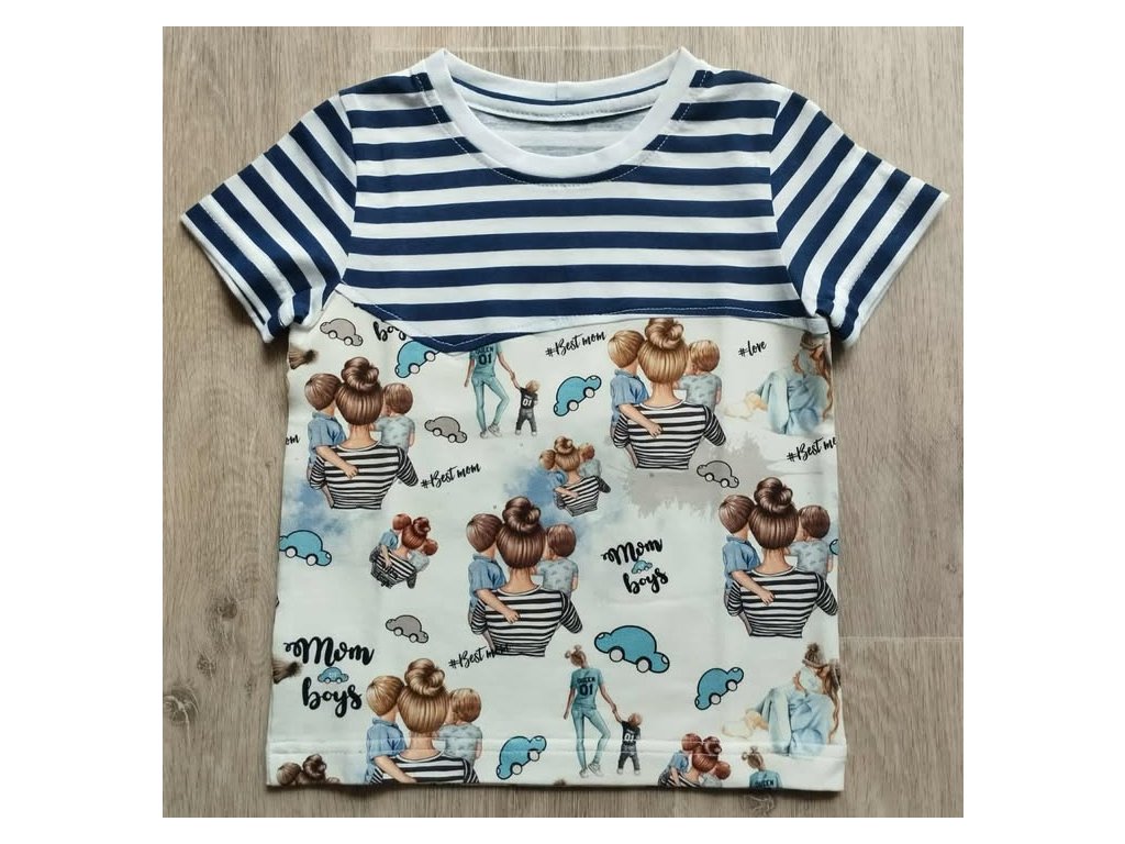 Úpletové tričko Máma a synové do kombinace s modrými pruhy na bílé ,materiál je příjemný na dotek .