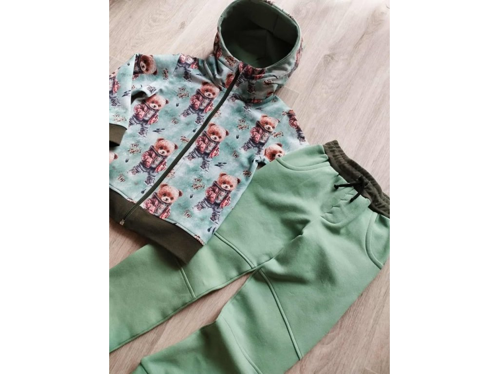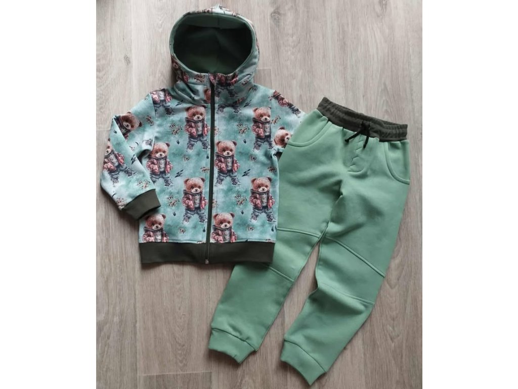 Tepláková souprava - mikina je z nepočeasé teplákoviny, má vyvýšenou kapuci s ochanou zipu ,kapsy klokanky.