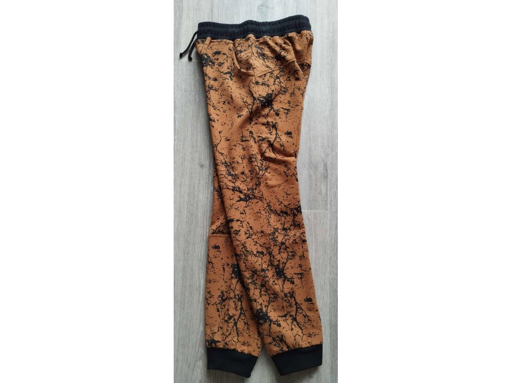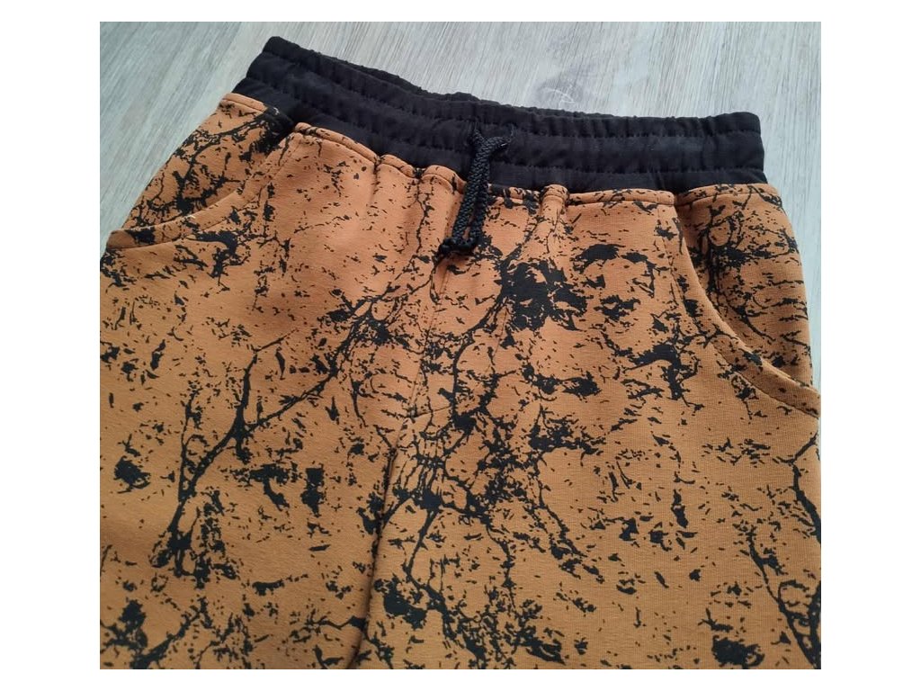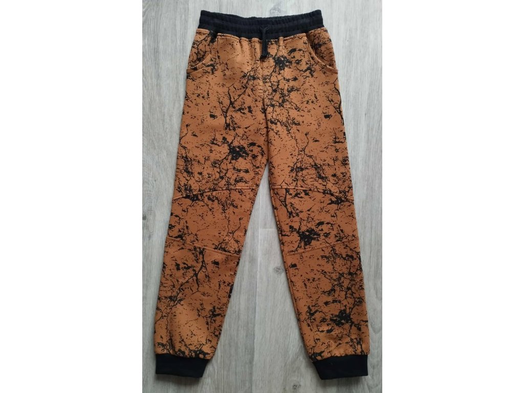 Tepláky z nepočesané teplákoviny , tepláky mají dvě kapsy ,v pase je guma se šnůrkou .