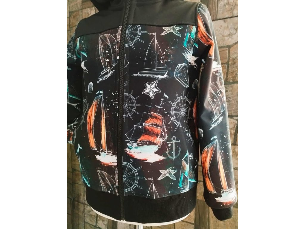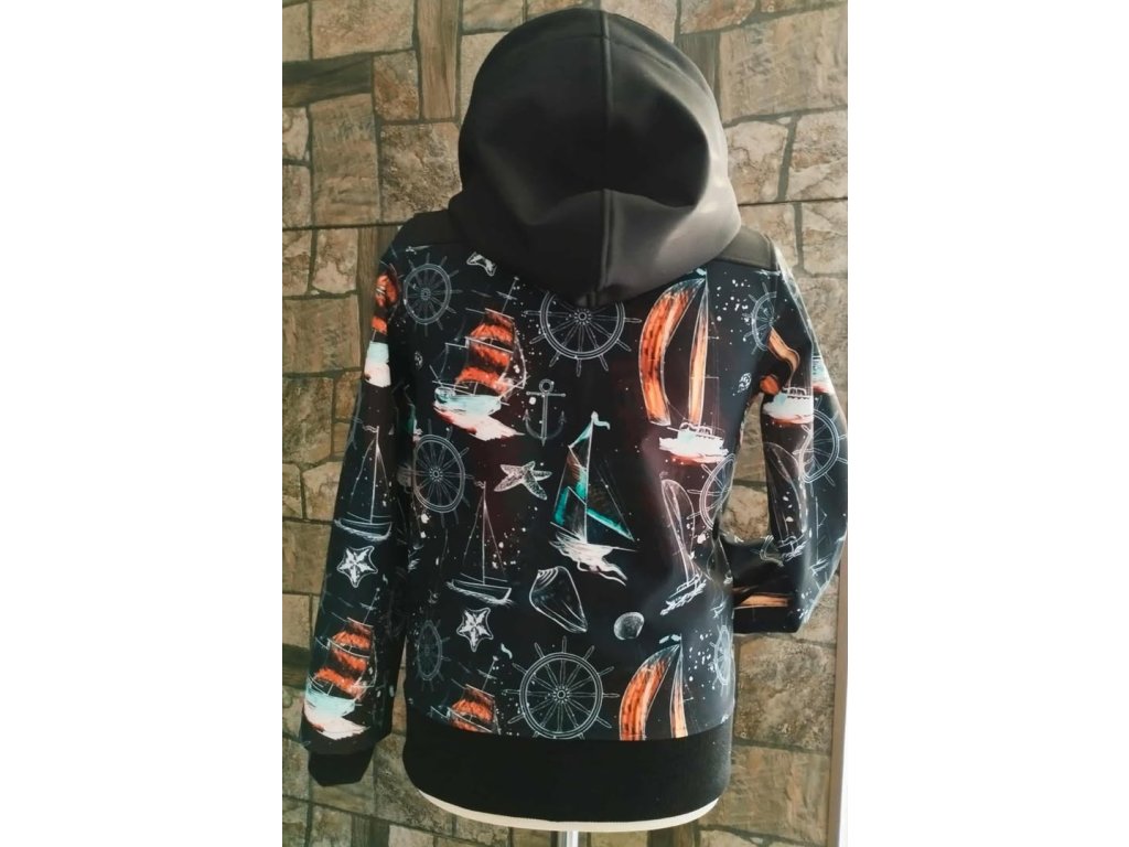 Vnitřní stranu softshellu tvoří fleecová vrstva. Rukávy jsou zakončené náplety. Spodní okraj je z pružného nápletu.