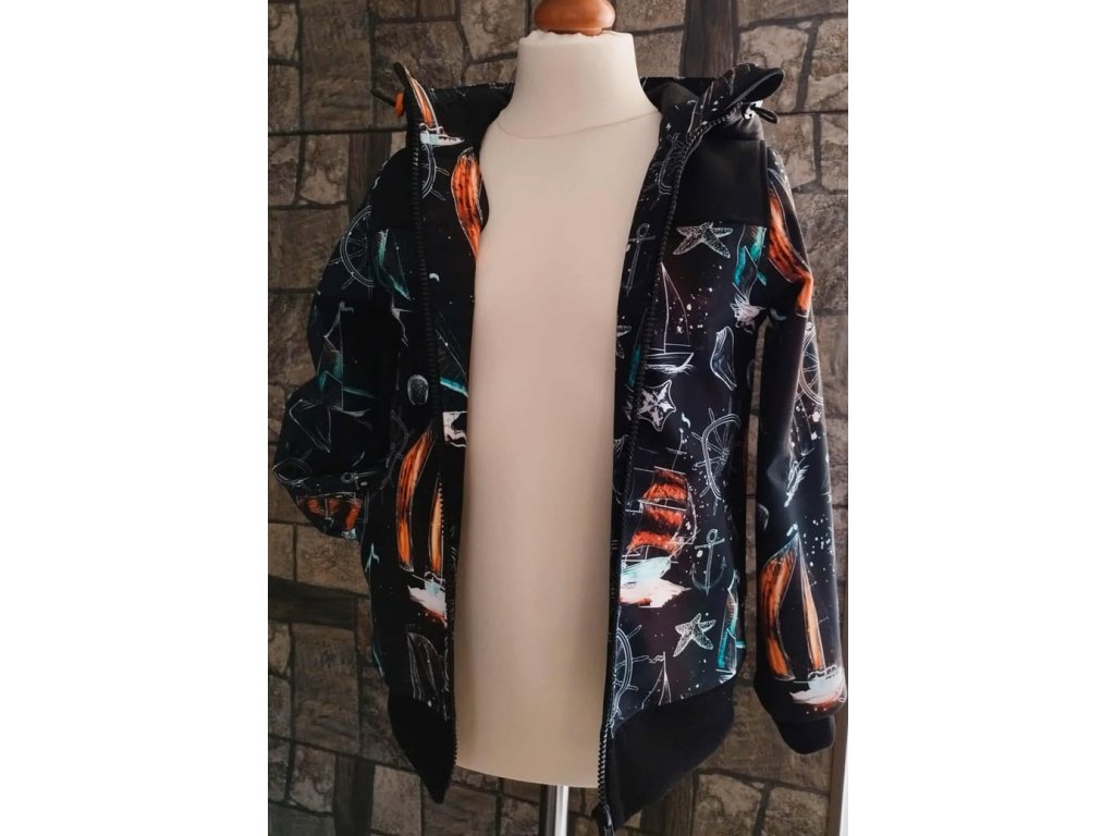Bunda je ze zimního softshellu ,vhodná na podzim a zimu (v zimě nosit nejlépe s thermo prádlem ) - jeho vlastnosti jsou nepromokavost a prodyšnost .
