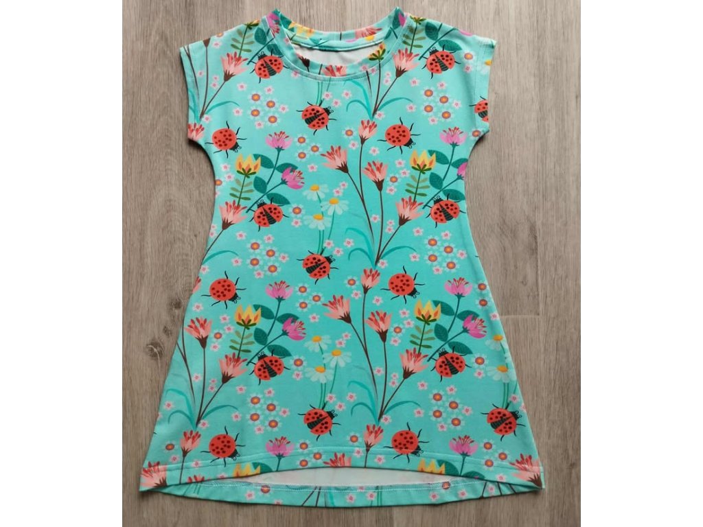 Úpletové šaty s beruškami.Šaty mají přinechaný rukáv . Barvy jsou mnohem sytější .