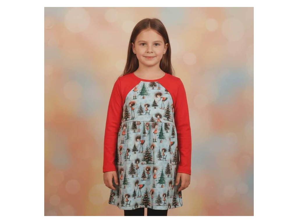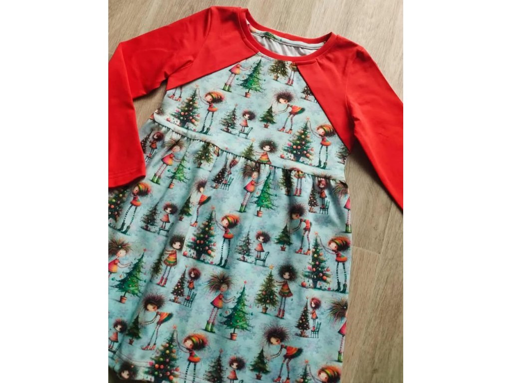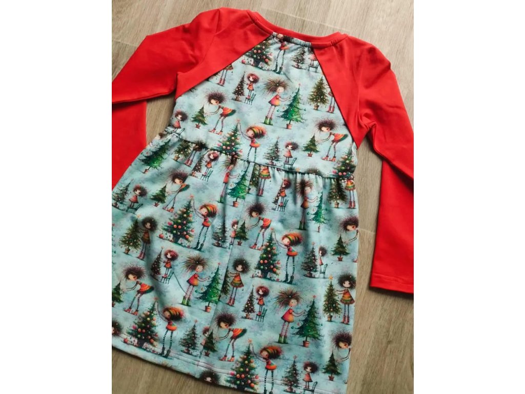 Úpletové šaty skřítek s červenou a s dlouhým rukávem.Obrázek na postavě je jen pro představu .