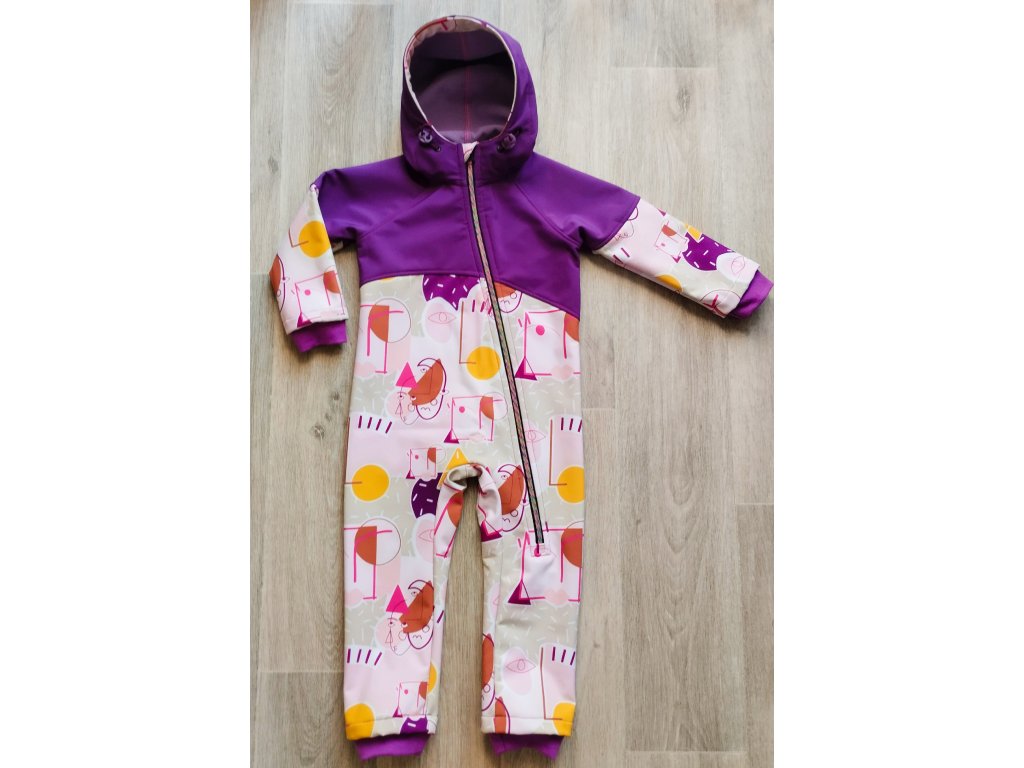 Sofstehllová kombinéza fialová s obrazci vel.92/98
