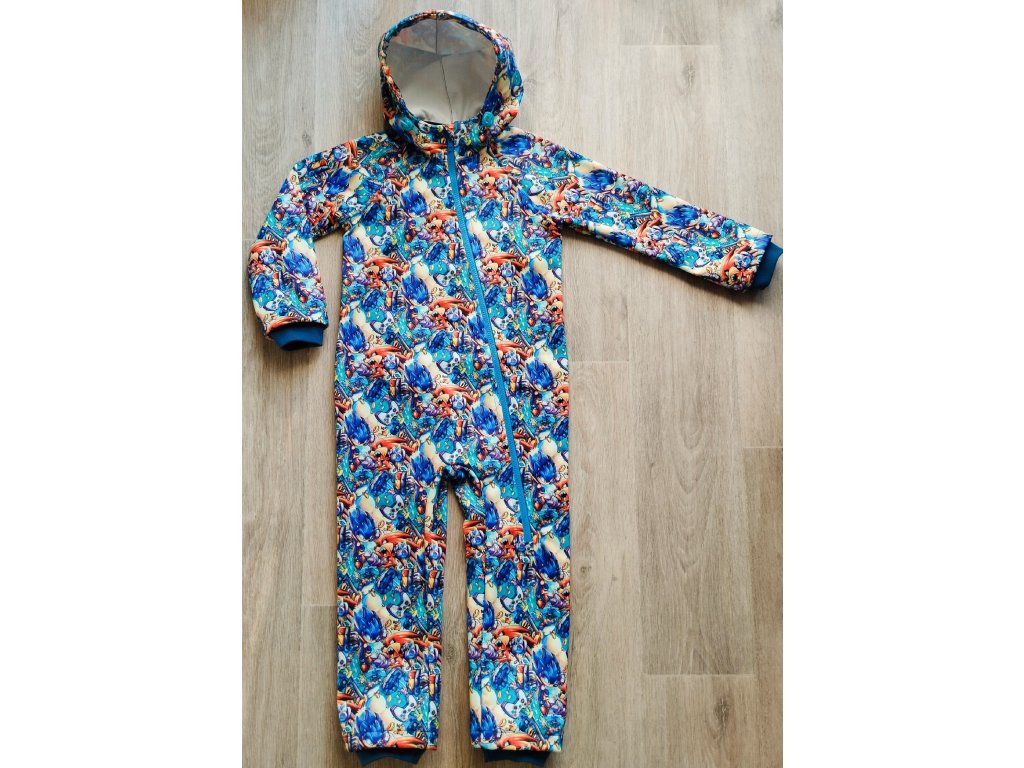 Kombinéza je ze zimního softshellu - jeho vlastnosti jsou nepromokavost a prodyšnost .
