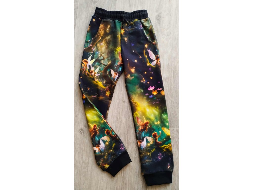 Tepláky z nepočesané teplákoviny , tepláky mají dvě kapsy ,v pase je guma se šnůrkou.