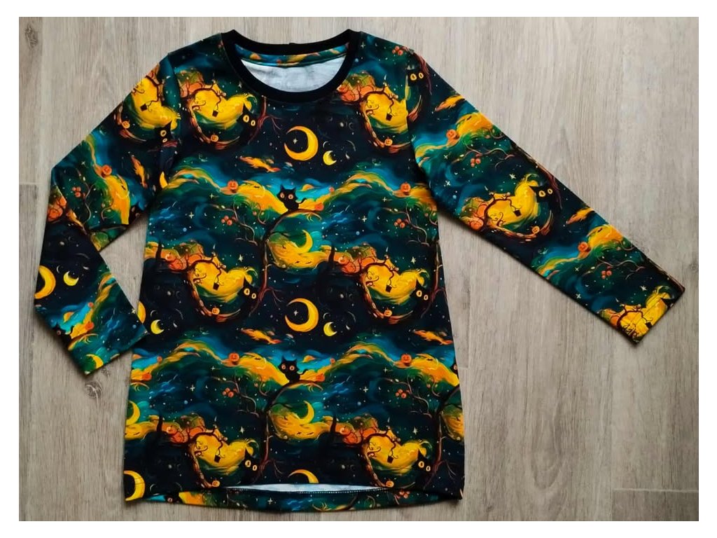 Úpletové tričko kočka s dýní ,materiál je příjemný na dotek a dobře se nosí .