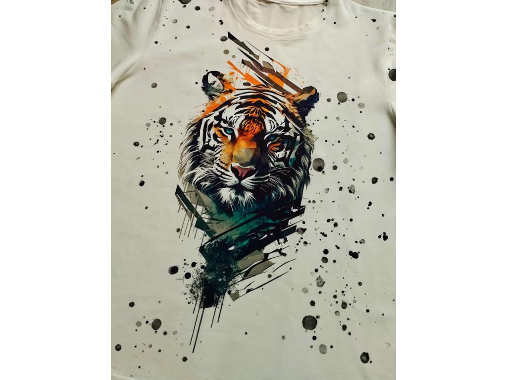 Úpletové tričko tygr na bílé ,materiál je příjemný na dotek .