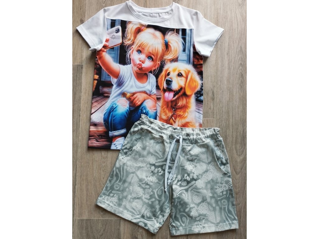 Úpletový komplet - tričko + kraťasy , kraťasy maji kapsy, pas je na stahování šnůrkou