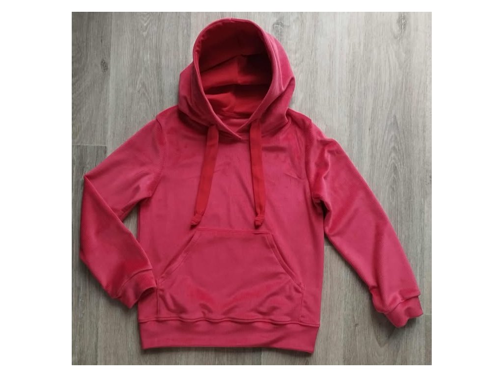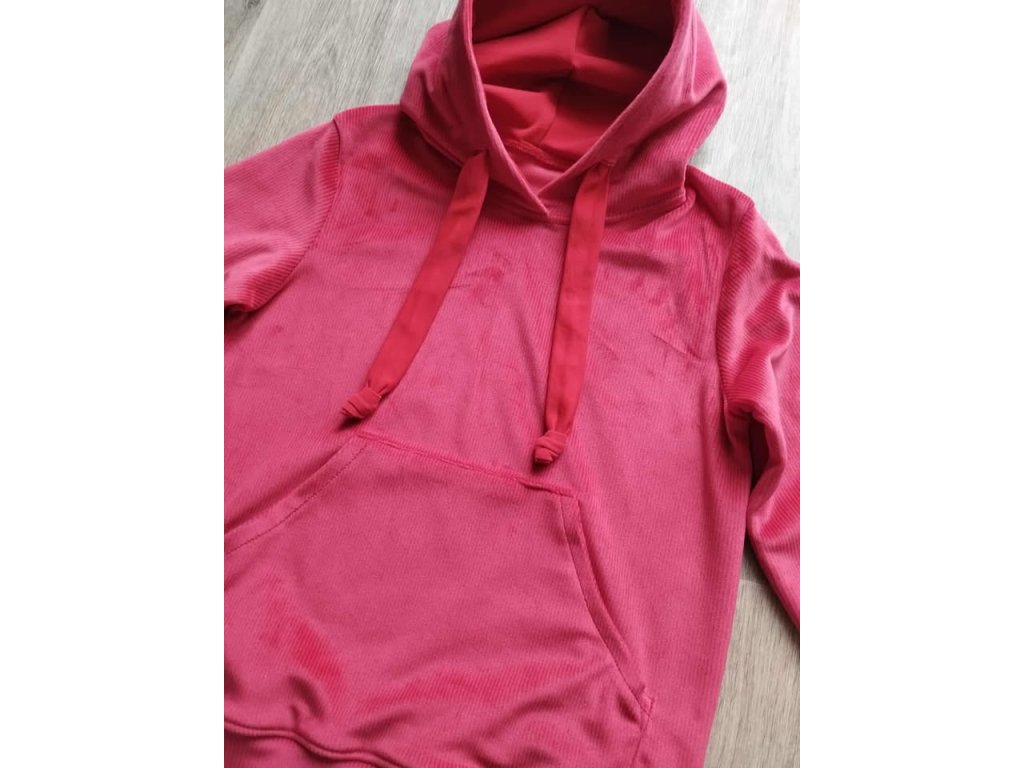 Mikina je z materiálu Super soft Velur ,je to jemný a hebký materiál s lehce lesklým povrchem, který působí luxusně. Mikina má kapuci se šŇůrkamii. Kapsa klokanka. Materiál je hodně pružný .