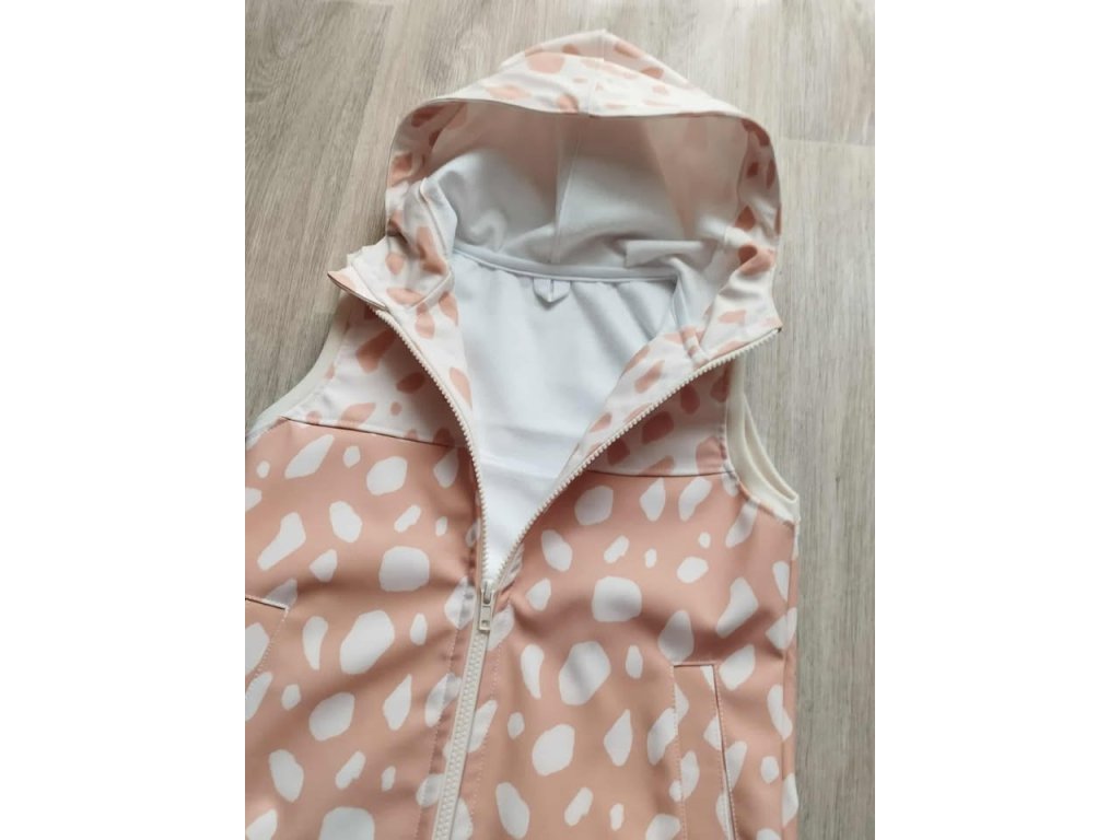 Vnitřní stranu softshellu tvoří fleecová vrstva. Kapuce je na stahování, kryt na zip proti poškrábání. Vesta má poutko.