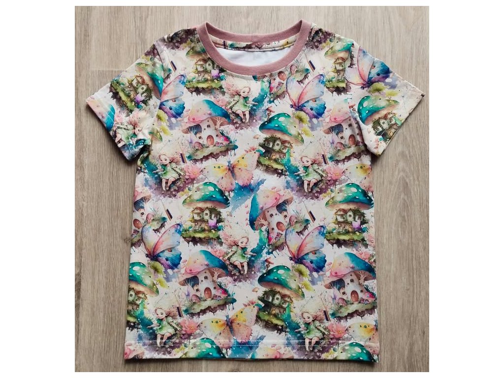 Úpletové tričko víla s mochomůrkou ,materiál je příjemný na dotek.